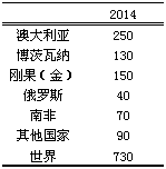 1.俄罗斯“阿尔罗萨”公司是世界大的金刚石开采企业,同时经营金刚石的勘探、生产和销售,公司主要在俄萨哈(亚库特)共和国和阿尔汉格尔斯克州开采金刚石。2013年公司开采量3690万克拉,2014年公司计划开采3600万克拉。