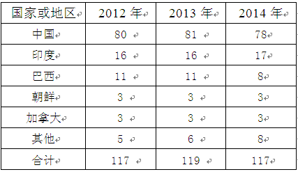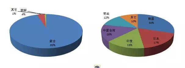 3.中国进口来源:中国每年出口大量的石墨,主要出口日本、美国、韩国、荷兰等国家。