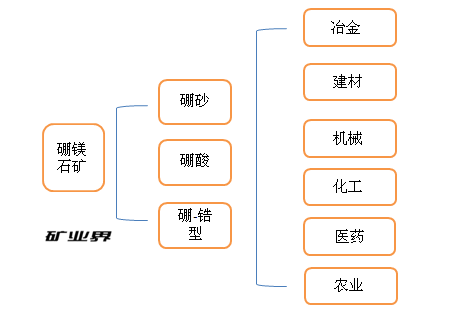硼作为化工原料生产,主要用于生产硼砂、硼酸和硼的各种化合物以及元素硼,广泛应用于冶金、建材、机械、电器、化工、轻工、核工业、医药、农业等部门。