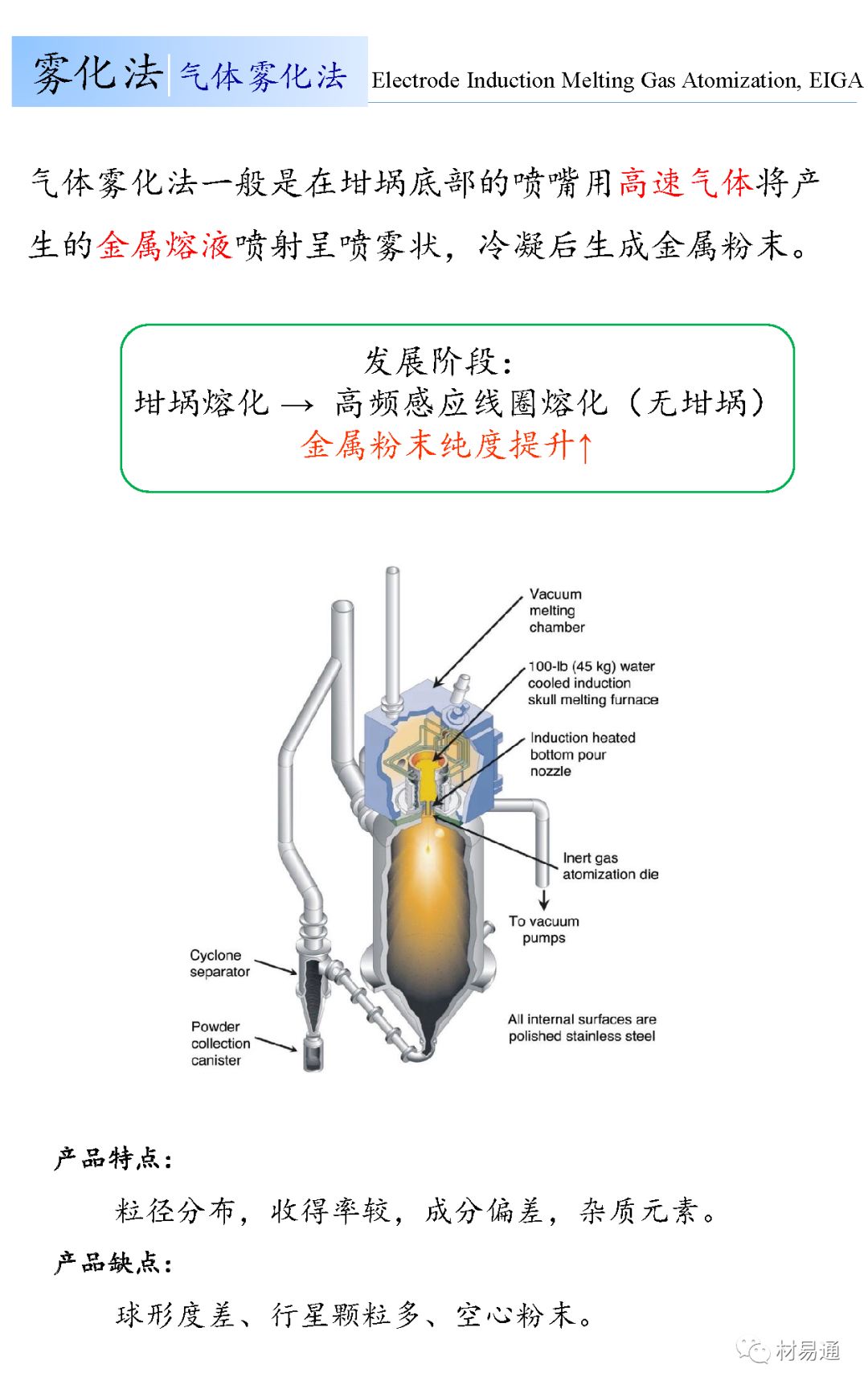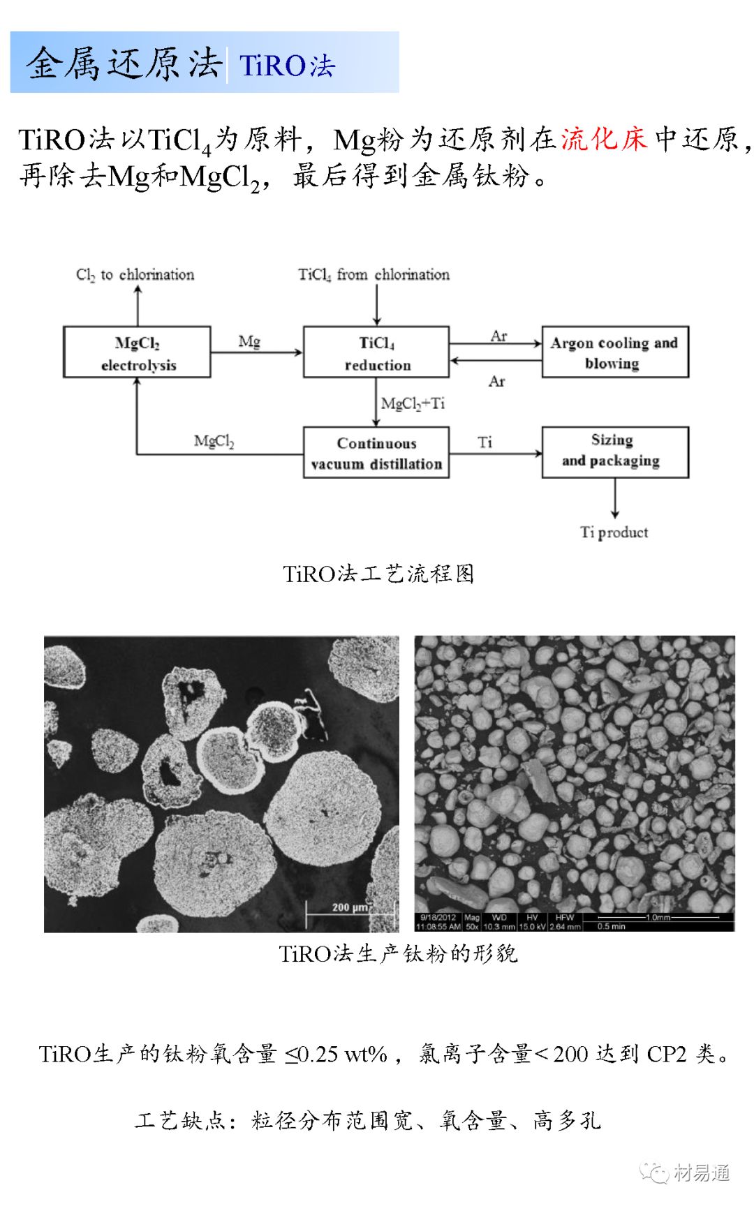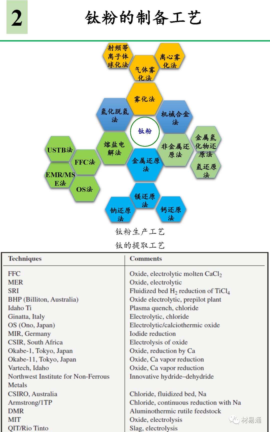 粉末冶金技术(PM) 作为一种成本低的近净成型(NNS) 技术,较传统加工技术大大地节省了钛合金的应用成本。粉末冶金技术主要包括模压烧结、金属注射成型(MIM) 和成本较高但性能更好的热等静压技术(HIP) ,以及最新研究热点增材制造技术(AM)。增材制造技术主要以激光选区3D 打印技术( SLM) 和电子束熔融金属3D 打印技术( EBM) 为代表。包括AM、MIM 和HIP 等在内的所有近净成型技术都采用钛和钛合金粉末原料制作产品零件,粉末的质量和成本直接影响到成品零件的质量和市场;因此开发出满足纯度高、球形度好、氧含量低、粒度适合与成本低廉的钛及钛合金粉末成为了钛及钛合金粉末冶金和金属3D打印领域的发展方向与研究热点。