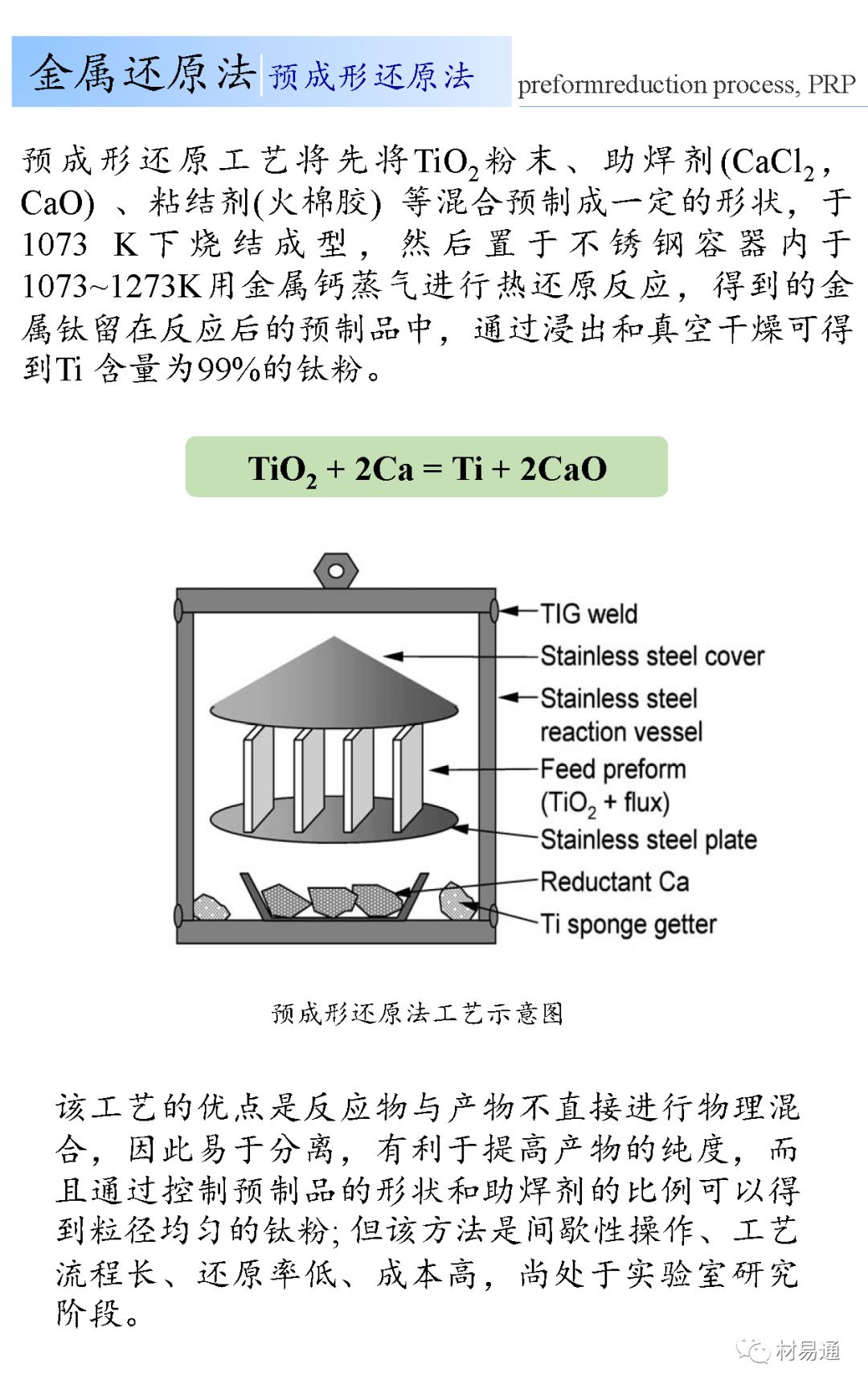 钛由于具有低密度、比强度高、耐腐蚀性好、高温下抗蠕变、生物相容性和焊接性能良好的特点得到人们的重视;但是金属钛的活泼尤其是钛粉具有很大的表面自由能、活性高、非常容易氧化、易与其他元素发生反应,因此金属钛的加工和应用过分昂贵限制了推广和应用。